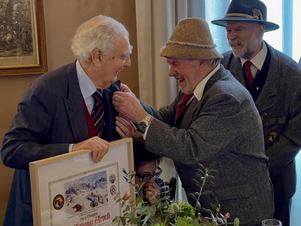 Lo scorso novembre una cerimonia al Palazzo delle Miniere aveva suggellato il legame a questa Comunità di Giovanni Arvedi insignito della cittadinanza onoraria di Primiero San Martino. In quell'occasione erano presenti il Sindaco e altre autorità, gli amici delle Guide alpine Aquile avevano ricordato le amicizie e le avventure di Arvedi sulle Pale, arricchite dai canti del Coro Vanoi.