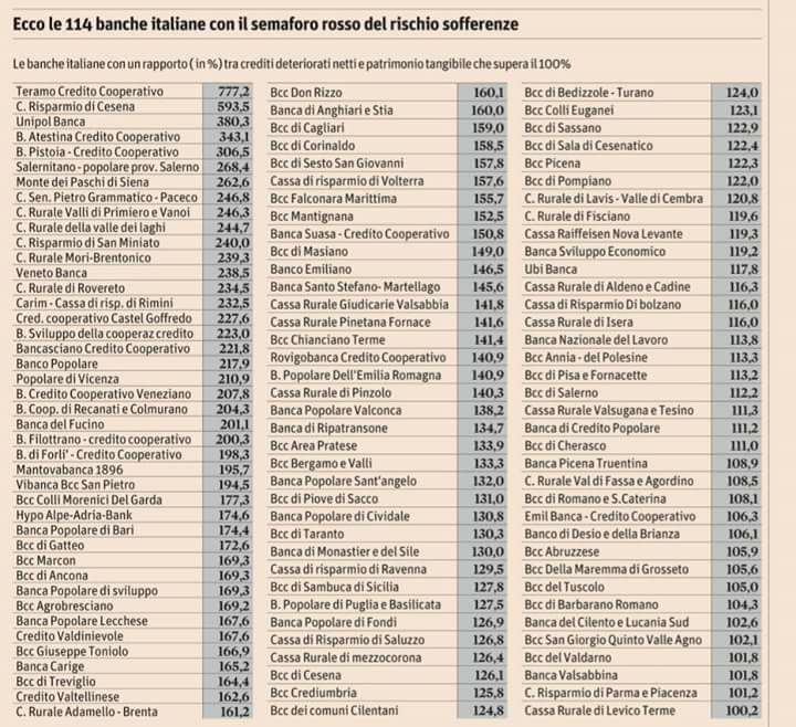 Redazione Primiero Giovedì 30 marzo 2017 6 minutiIl consigliere provinciale del Movimento 5 Stelle si limita a pubblicare su Facebook una tabella che parla da sola. E ironicamente commenta: "Il Sistema bancario Trentino sugli scudi". Lodato, osannato e portato al trionfo. In tabella sono elencati i 144 istituti bancari a rischio sofferenze. Il Sole 24 ore stila la classifica ingloriosa di quelli con un rapporto percentuale tra crediti deteriorati netti e patrimonio tangibile superiore al 100%. Sono 11 le banche Trentine che compaiono nella lista. Alcuni istituti trentini di credito cooperativo non esistono più, come la Cassa Rurale della Valle dei Laghi e quella di Mori e Brentonico, confluite nella Cassa Rurale dell'Alto Garda. E non esiste nemmeno più la Cassa Rurale di Levico, confluita nella Cassa Rurale dell'Alta Valsugana. I dati, forniti da R&S Mediobanca, si sono infatti basati su dati di bilancio 2015, e le fusioni di questi istituti sono datate tra il 2016 e il 2017. Ma rimangono le altre, la Cassa Rurale di Rovereto che vede un rapporto del 234,5%, quella dell'Adamello Brenta con un rapporto percentuale del 161,2, la Cassa Rurale di Pinzolo al 140,3 %, poi tutte sopra il 100% Mezzocorona, Lavis e Val di Cembra, Isera, Valsugana e Tesino.I 'crediti malati' di questi istituti sono alti, valgono più del loro capitale totale. "Quando si supera il 100% dell'indice 'Texas ratio' - spiega Fabio Pavesi sul Sole 24 ore - la banca scricchiola e occorre intervenire, pena grossi guai. O si aumenta il capitale - spiega il giornalista economico - oppure ci si fa comprare da una banca più sana, o in alternativa, si cerca di vendere quella montagna di Npl (non performing loans, ndr), sapendo che la loro cessione libererà il bilancio a spese però di nuove maxi-perdite". Per capirci, i crediti in sofferenza sono quelli erogati dalle banche in passato a soggetti che, nel frattempo, sono diventati insolventi. "Qual è l'effetto di una mole così imponente di sofferenze e incagli?" - si chiede Pavesi: "In primis è sul conto economico per poi finire sul capitale. Quei Npl vanno metabolizzati e svalutati ogni anno che passa. E l'impatto delle rettifiche sui crediti malati, quando lo stock è così alto, è devastante sui conti". E allora succede questo: si lavora, si fa fatturato, sapendo che si andrà comunque in perdita secca. "Un destino che accomuna quasi tutte le banche in cui il peso degli Npl supera la soglia del 100% del capitale. - spiega il giornalista del Sole - rettifiche e costi operativi finiscono per essere più elevate dei ricavi con le perdite che diventano così automatiche. E soprattutto si accumulano anno dopo anno. E ogni volta che si chiude il bilancio in rosso viene depauperata una parte del patrimonio". Una sorta di spirale perversa. Più hai masse di crediti inesigibili, più devi mettere in conto perdite. "Queste si mangiano il capitale e quel rapporto già compromesso con lo stock di sofferenze finisce per aumentare anziché diminuire. Un bel rebus difficile da risolvere - chiude il suo articolo Fabio Pavesi - salvo gettare la spugna e chiedere che qualcuno dall'esterno venga a salvarti". E chi interviene dall'esterno nel nostro Trentino "stabile e sicuro e capace di far fronte a tutte le crisi"? La Cooperazione Trentina: "Intervengono coloro che hanno portato il sistema del credito a questi livelli - osserva però Filippo Degasperi - perché se siamo a questo punto la responsabilità sarà pur di qualcuno". Per il consigliere pentastellato la risposta a questa situazione pericolosa "è quella dell'annacquamento". "Funziona così - spiega - la banca con una percentuale di sofferenza del 120 si fonde con una che ha una sofferenza ridotta così da abbassare la media percentuale. Un'operazione che non elimina il problema. Diverso il caso di Rovereto - continua Degasperi - dove il nuovo presidente della Cassa rurale Geremia Gios ha cacciato i vertici dell'istituto, ha puntato l'attenzione sui responsabili, per poi rimboccarsi le maniche per affrontare la questione alla radice. Ma non mi sembra che in tanti seguano il suo esempio". C'è poi la responsabilità della politica. Anche su questo Filippo Degasperi è critico: "Nella relazione di insediamento - afferma - Ugo Rossi non ha mai pronunciato la parola 'credito', non ha fatto nemmeno un accenno a una questione che tutti definiscono nodale, centrale, imprescindibile". E pensare che la Provincia ha una sua banca. "Il Mediocredito - spiega - dove la maggioranza è pubblica, delle Province di Trento e Bolzano e della Regione. Questo strumento - spiega - che potrebbe essere importante per il credito e per gestire in modo intelligente queste situazioni, sarà forse svenduto, regalato, al sistema del credito cooperativo". "Un'operazione idiota", secondo Degasperi. "Invece di usare un banca pubblica, usata dall'Ente pubblico per risolvere i problemi del credito, ci si è inventati il Fondo strategico che non si sa bene a cosa serve, che diventa opaco, dove il pubblico mette i soldi ma la gestione è affidata ad altri. Se chiedo informazioni sui bilanci e sulle operazioni finanziarie - afferma il consigliere - mi rispondono che si tratta di una società privata, che non è tenuta a dare risposte". I dati sono comunque questi, sette istituti bancari trentini hanno un carico di sofferenze che pesa oltre il 100% del patrimonio. "Possono anche dire che il sistema è solido, che il sistema tiene, ma la realtà è quella che emerge da questa fotografia - conclude Degperi. Se siamo arrivati a questo punto qualcuno ne dovrebbe rispondere, ma soprattutto a quel qualcuno non dovrebbe essere affidata la risoluzione del problema che esso stesso ha generato". Ovviamente il riferimento al sistema del credito cooperativo è sottinteso.